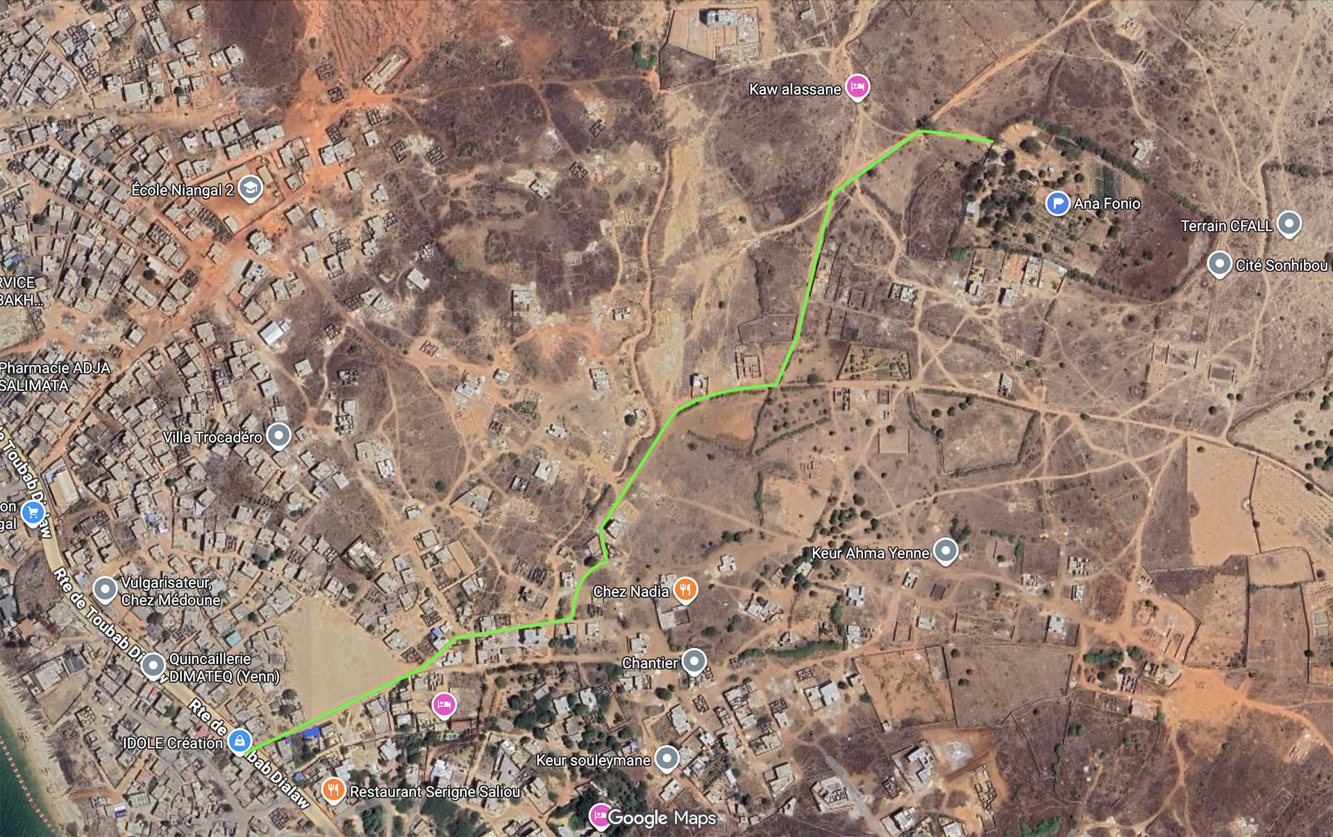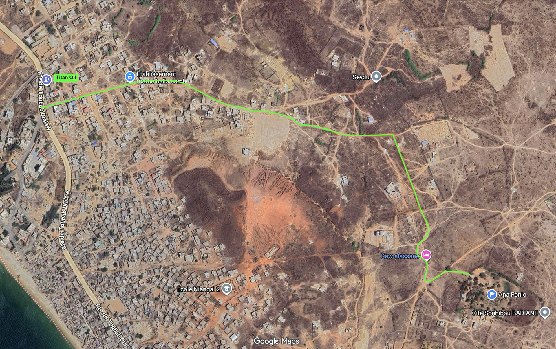Dans le GPS / Google Maps, entrez la station-service „Station Titan Oil Yene“ comme destination et NON les coordonnées de la ferme !! À partir de là, suivez le croquis à gauche.